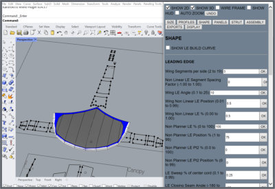 KaroroCAD supplies all data needed for successful assembly of the Kite or Wing. Seam allowances, panel markings and seam alignment marks are all automatically created. Each set of output geometry is assigned its own layer on export to Rhino - making post processing easy to manage if required.